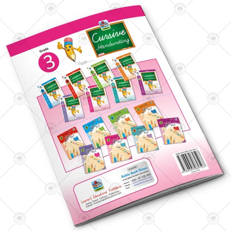Clean and beautiful writing plays an important role in human life. The strong foundation of happiness is always helpful in the child’s academic and practical life. “Cursive Handwriting” is a unique series of its kind that not only teaches the child to write correct Urdu but also shows him how to hold a pencil correctly. The uniqueness of this series can be gauged from the fact that the child learns happily as well as singular, masculine, feminine, contradictory words, as well as many everyday words. This book can benefit not only children but also anyone who wants to make their writing look good.